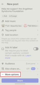 1) On Instagram, start a new post and select a photo of your loved one with AS.